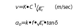 また、信号の伝搬速度は基板材料に依存し、伝搬速度(ν)、および、誘電損(αD)は