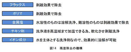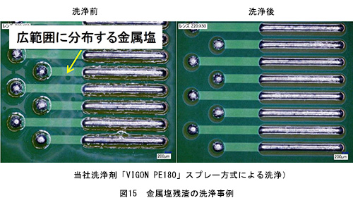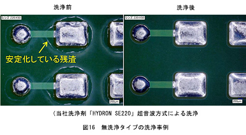 難溶性物質洗浄の対応として、金属塩除去、無洗浄ペーストの洗浄事例を図15、図16に示す。
