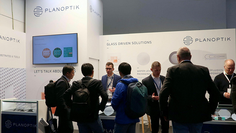 写真11 TGV Cuめっき ガラス基板を展示するドイツのPlan Optik