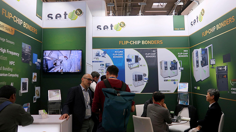 ドイツのめっきや実装関連のPacTech社(写真14)、フランスのフリップチップボンダメーカーであるset社(写真15)も存在感のあるブースであった。