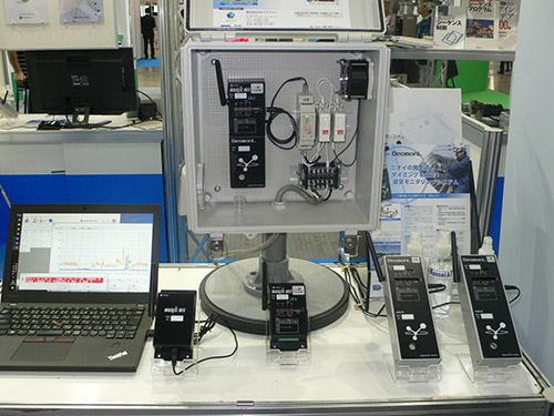 (株)共生エアテクノは、工場等の排出臭気や場内臭気を、24時間365日、定点から遠隔地にて常時モニタリングできる臭気監視システム『Deomoni』の展示を行っていた(写真3)。
