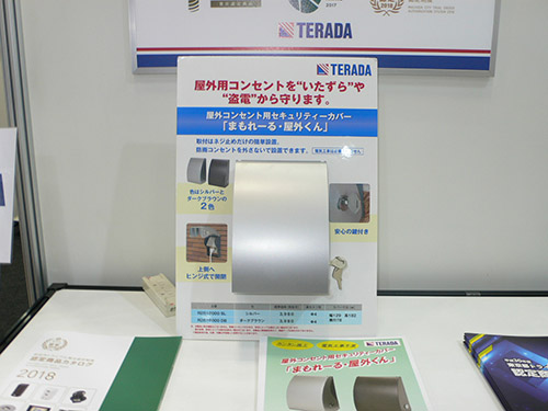 (株)寺田電機製作所は、簡単施工で電気工事不要な屋外コンセント用セキュリティカバー『まもれーる・屋外くん』の展示を行っていた(写真4)。