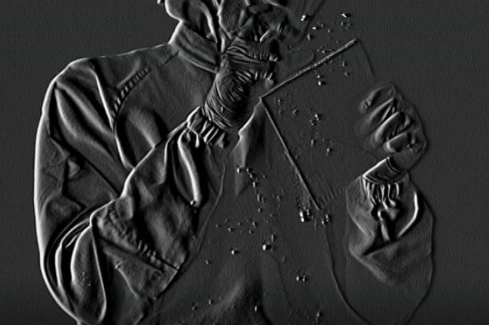 作業者が胸元を軽く叩くと顔面部から発塵していることが分かる。