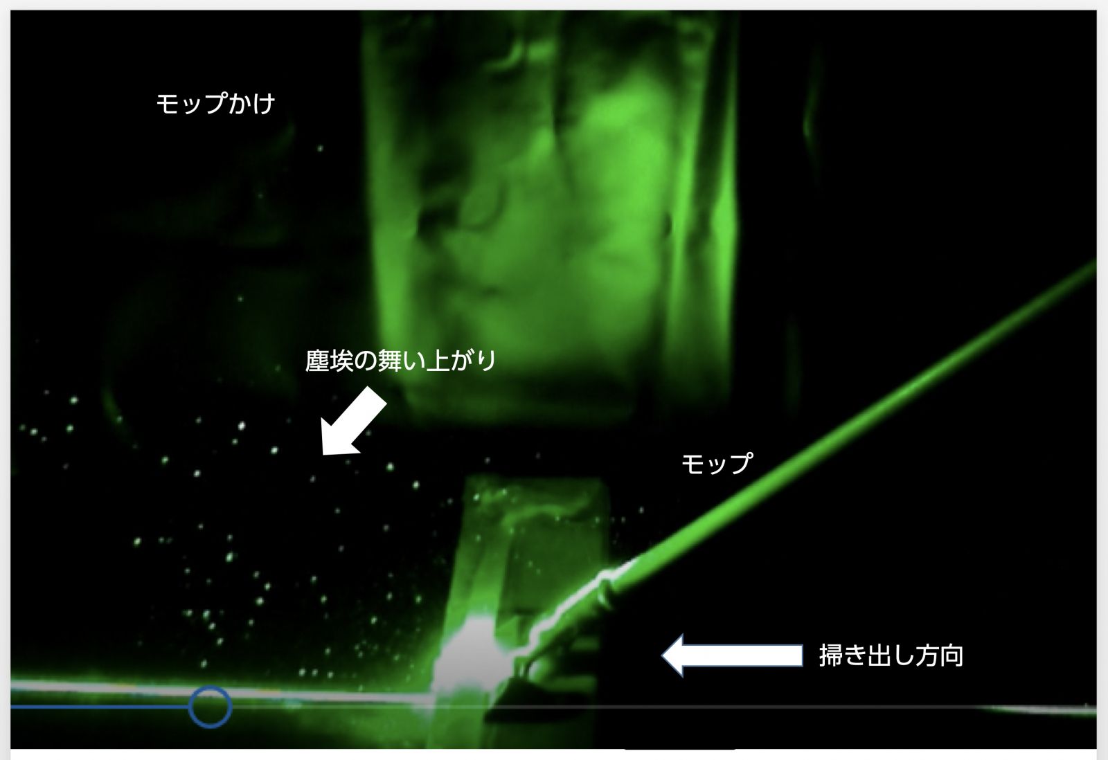このとき、進行方向側のモップ先端上側で塵埃の舞い上がりが見られた。