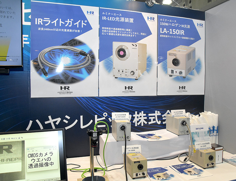 同製品は、異物検査や透過撮影に適したモデル。1060nm/1100nm/1150nm/1200nm/1300nm/1450nm/1550nm、7種類のLED中心波長モデルがラインアップされており、用途に応じて最適な光源を選ぶことができる。この他、液体やフィルムの異物検査やシリコンウエハ透過撮影に適したハロゲン光源装置『LA-100IR』『LA-150IR』も展示されていた。