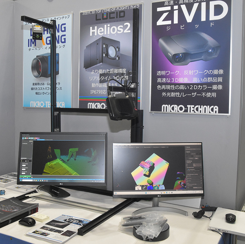 (株)マイクロ ・ テクニカは、ZiVID社の位相シフト方式高精度3Dカメラ『ZiVID』シリーズの最新モデル『ZiVID2+R』の展示を行っていた。