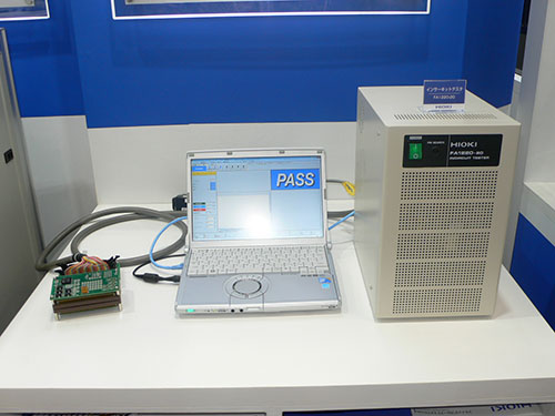 日置電機(株)は、多チャネル高速検査や4端子測定方式にも対応する組み込み可能なモジュールタイプのインサーキットテスタ『FA1220』の参考出品を行っていた(写真5)。