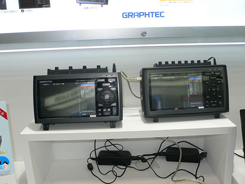 グラフテック(株)は、CATⅢ 600Vの安全規格に対応し、高電圧/実効値測定が可能な高電圧高速4チャネルロガ『GL2000』の展示を行っていた(写真6)。