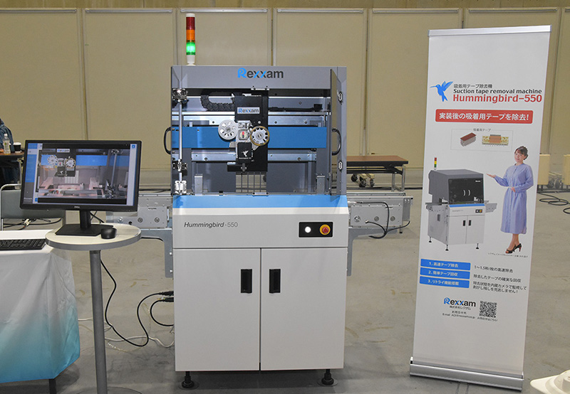 (株)レクザムは、実装後の吸着用テープを自動で除去する吸着用テープ除去機『Hummingbird-550』を紹介していた(写真18)。