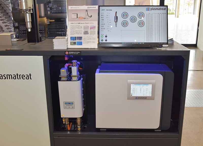 本システムに使われている、プラズマ前処理用デジタルジェネレータ『FG5001S』は、IGBT半導体増幅装置を標準装備しており、最大2本のプラズマノズルを接続したOpenair-Plasmaシステムの制御が可能となっている。操作性を重視した使いやすいタッチパネルも採用されているのも特徴のひとつ。