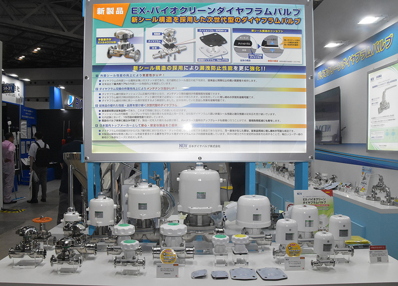 日本ダイヤバルブ(株)は、新シール構造を採用したダイヤフラムバルブ(特許取得済)『EX-バイオクリーンダイヤフラムバルブ』の展示を行っていた。