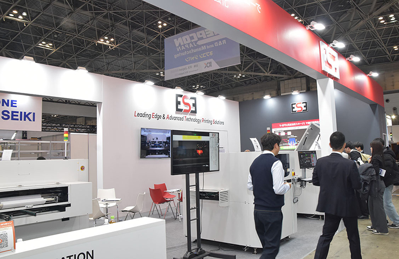 イーエスイージャパン(株)は、パッドサイズ50μm以下の半導体プロセスに特化した高精度・高速スクリーンプリンタ『ES-H2』などの展示を行っていた。