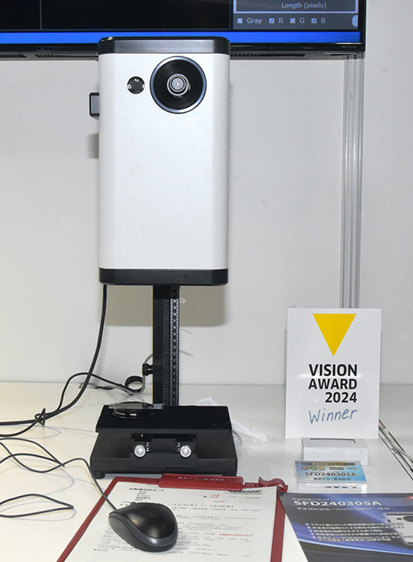 東芝テリー(株)は、平面についた観測が困難な微小な傷を可視化する表面探傷スコープ『SFD240305A』の展示を行っていた。