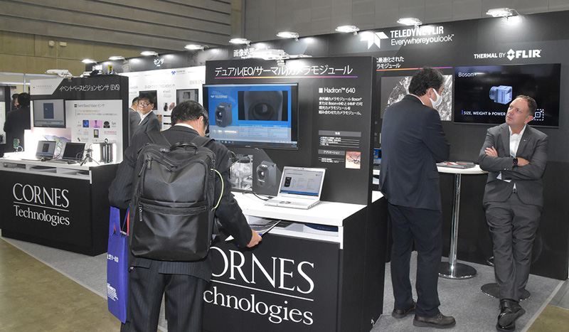 同社ブースでは、Teredyne FLIR社の『SWaP+Cに最適化されたMWIRカメラモジュール』、『非冷却型LWIRカメラモジュール』などを中心に、Prophesee社の『イベントベースビジョンセンサ(EVS)』、Gelsight社の『産業用ロボット向け超小型リアルタイム3D触覚センサ』などの先端製品が、ブロックごとに分けられて展示されていた。
