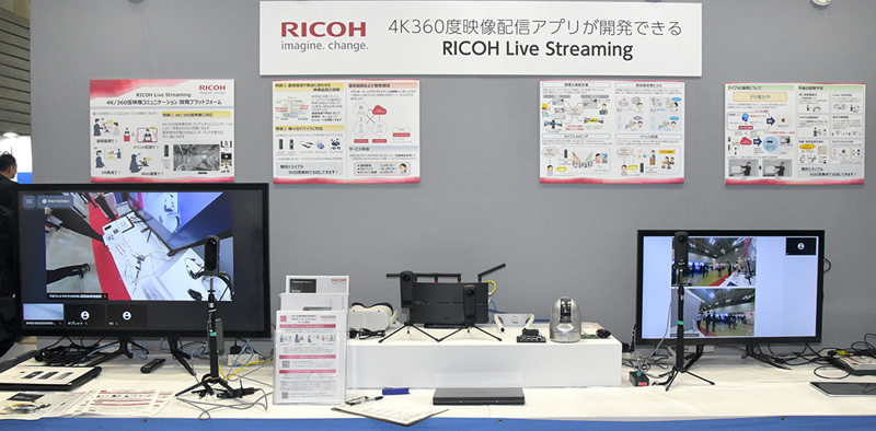 (株)リコーは、リアルタイムコミュニケーションのクラウドサービスを利用シーンに応じて開発できるプラットフォーム『RICOH Live Streaming』の紹介およびデモンストレーションをブース内で行っていた。