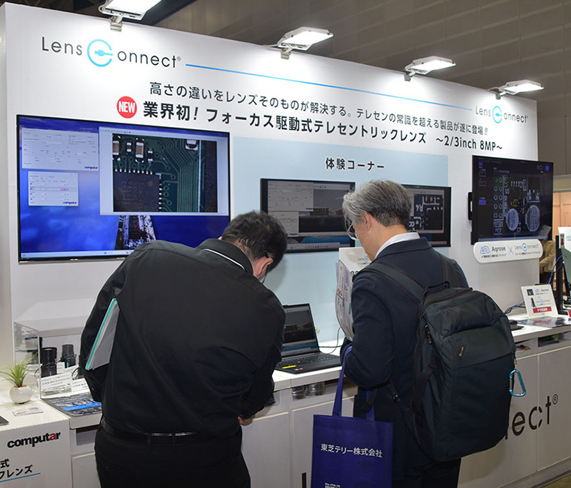 CBC(株)は、業界初のフォーカス駆動式テレセントリックレンズ『LensConnect』シリーズの展示を行っていた。