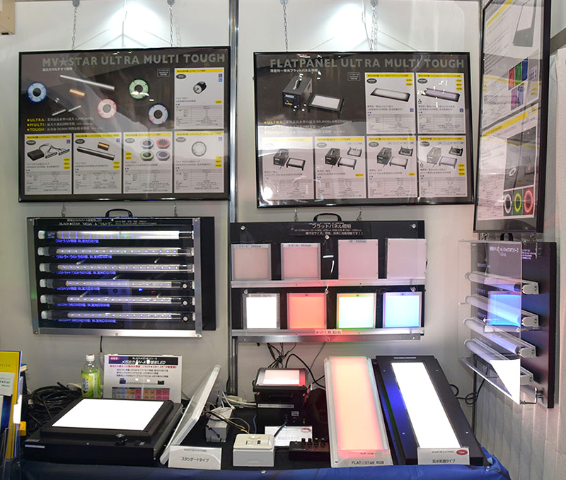 (株)飯田照明は、LEDブラックライト『BLACK★STAR』シリーズ、導光板LED照明『FLAT★STAR』シリーズ、製品検査用LED照明『MV★STAR』シリーズの展示を行っていた。