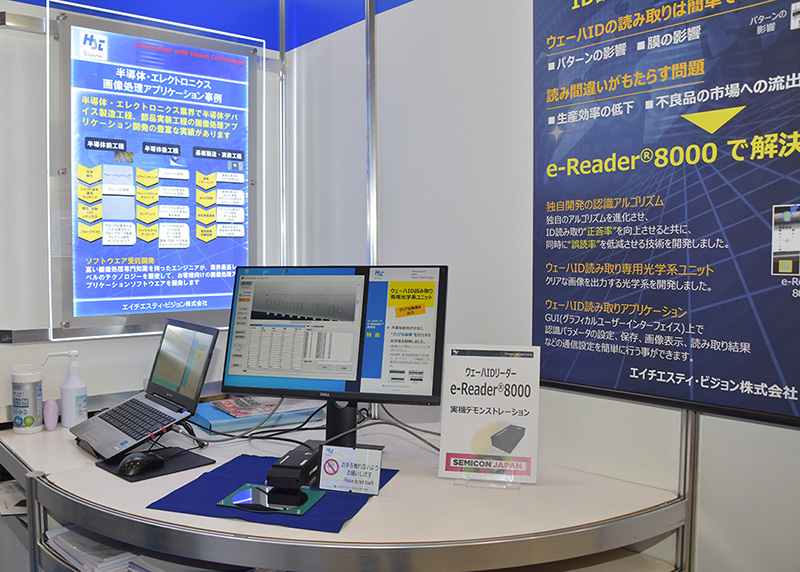 エイチエスティ・ビジョン(株)は、独自開発の認識アルゴリズムと専用光学系システムによって読み取り性能を進化させたウエハIDリーダ『e-Reader8000』の展示およびデモンストレーションを行っていた。