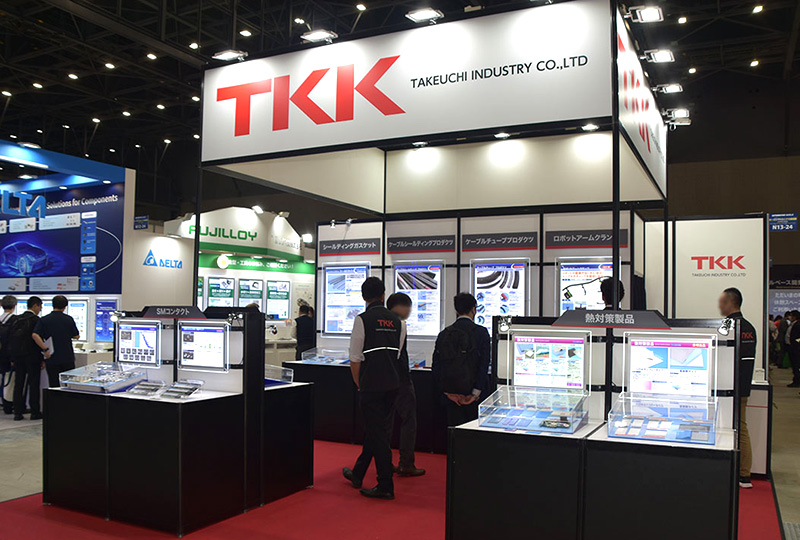 竹内工業(株)は、各種製品をブロックごとに展開して展示を行っていた。