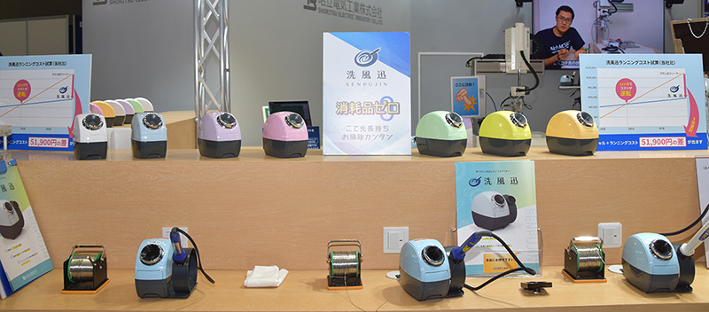 昭立電気工業(株)は、こて先の形状を選ばず使用できるサイクロン式はんだごてクリーナ『洗風迅』の展示を行っていた。