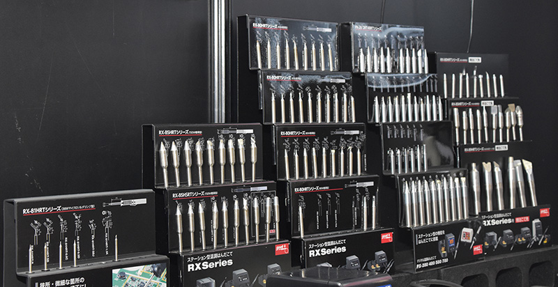 同製品は、同社の社内一貫生産なので、はんだ付け作業を追求した形状や精度を可能としている。こて先形状は円錐型のBタイプ、C面付のCタイプ、マイナスドライバ型のDタイプ、ナイフ型のKタイプがある。『RX-81HRT』シリーズ(36Wマイクロソルダリング型)、『RX-85HSRT』シリーズ(150W標準型)、『RX-89HRT』シリーズ(特注こて先・500W高ワット型)などさまざまなシリーズが用意され、特注仕様は小ロットにも対応可能。
