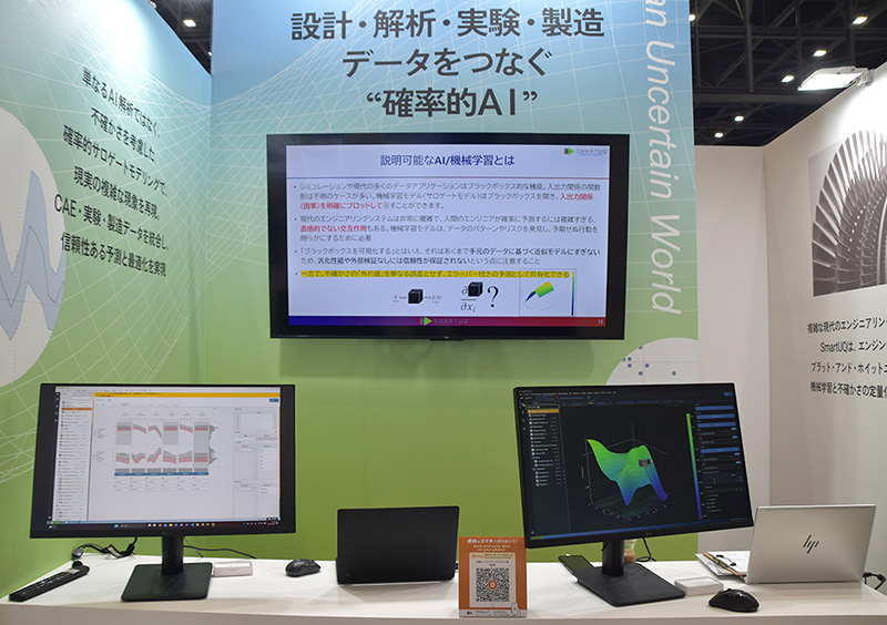 同社ブースでは、AI・機械学習ソフトウェア『SmartUQ』を紹介