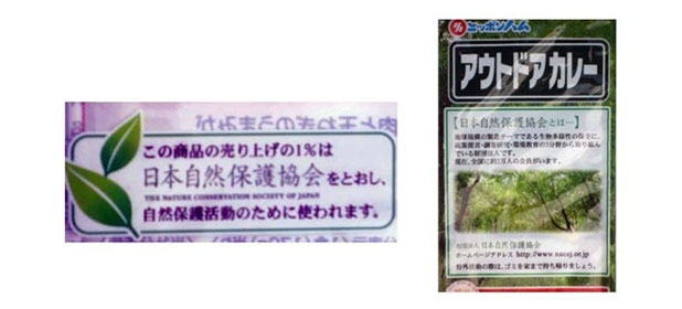 売上金の一部を環境保護活動に寄付するような活動もある。写真33は、野外活動を実施する人が購入するカレーに対し、売上高の1%が日本自然保護協会に寄付されている。2009年にも期間限定で実施されたことがある。