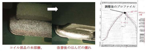 リフローではフラックスの劣化が問題となる。下部ヒータの温度を上げて、上部ヒータによる部品やフラックスへの熱影響を抑えるが、不足する場合は上部ヒータのトップ温度を上げ、その分、プリヒートの熱量を抑えるためにコンベア速度を上げて、フラックスの劣化を抑える。