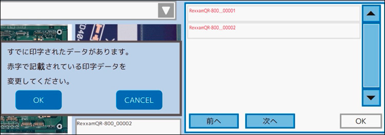 基板識別用に基板にQRなどを印字するが、以降の工程で紐付けが行えるように、内蔵カメラによるQRの読み出しチェックやシリアルの重複チェック機能を搭載している(図13)。