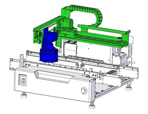 高剛性のX-Y2軸駆動機構とベルト駆動採用により、カメラ部は静かで滑らかな高速移動が行える。また、自社製品の半導体ウエハ搬送用ロボット技術を応用し、±0.1mmの正確な位置精度を得ることができる。カメラ駆動部を図11に示す。