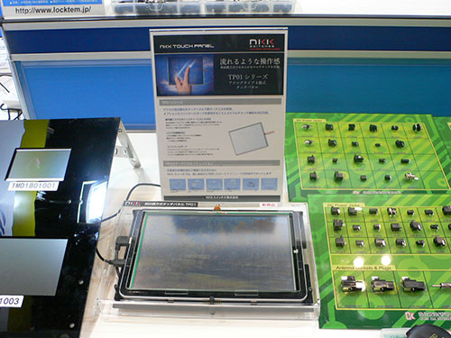 東亜無線電機(株)は、抵抗膜方式でなめらかなマルチタッチを実現するNKKスイッチング(株)製のアナログタイプ4線式タッチパネル『TP01シリーズ』の展示を行っていた(写真3)。