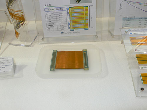 山下マテリアル(株)は、12層貫通スルーホール構造で板厚0.98mmの薄さを実現した高密度高多層FPCの参考出展を行っていた(写真5)。