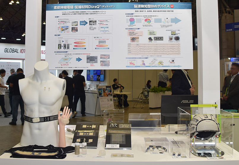 柔軟伸縮電極・配線材料『DuraQ(デュラック)』を使ったウェアラブルデバイスを展示
