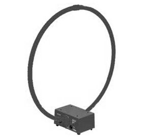 アンテナは大きく分けると電界を効率よく放射するものと、磁界を効率よく放射するものの2つのタイプがあります。電界を効率よく放出する代表的なアンテナはダイポールアンテナと呼ばれるものです(図12)。これに対して、ループアンテナと呼ばれる形状は磁界を効率よく放出します(図13)。