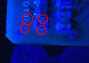 図3 フラックス残渣によるコンフォーマルコーティングでの『空洞』