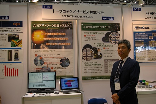 トープロテクノサービス(株)では、東大ベンチャーと共同開発した、「AIを使った基板設計」を紹介していた。