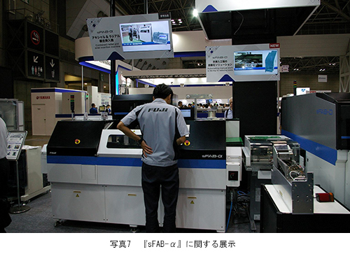 この他、同社は、ラジアル部品挿入機、アキシャル部品挿入機、ジャンパ線挿入機のそれぞれの専用挿入機を1台に集約した複合挿入機『sFAB-α』を紹介していた(写真7)。