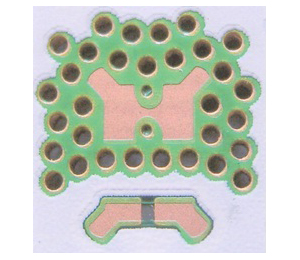 ガラス-エポキシ基板(FR-4)に複数個の穴を開けると、基板の温度上昇を抑制する効果が認められており、LEDメーカーからも推奨基板(図5)が提案されている。