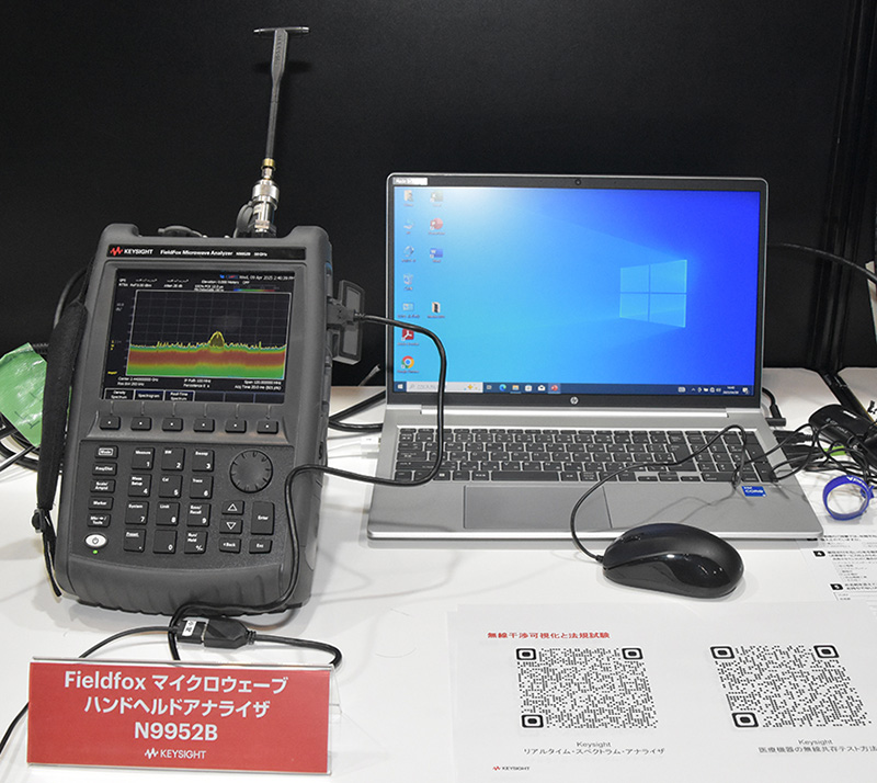 キーサイト・テクノロジー(株)は、バッテリ駆動設計の『FieldFox マイクロウェーブ ハンドヘルドアナライザ N9952B』の展示を行っていた。