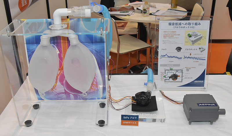 シナノケンシ(株)は、CPAPデバイスにも使われているブロワ『5kPAブロワ』の展示を行っていた。