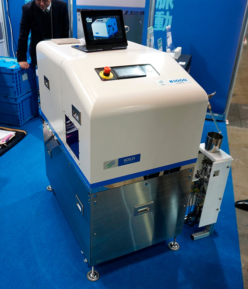 (株)コスにじゅういちは、最高圧200MPaで新素材の開発や処理回数の減少に貢献する高圧無脈動ホモゲナイザー『N2000』の展示を行っていた。