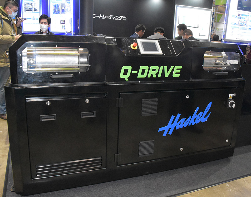 サニー・トレーディング(株)は、最高水準の安全性とパフォーマンスを実現する次世代の電動サーボ駆動型ガス圧縮システム『HASKEL Q-DRIVE』の展示を行っていた。