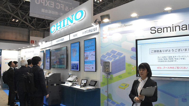 同社ブースでは製品やパネル展示の他、大型モニタを使ってブース内を解説するプレゼンテーションを1時間おきに行っていた。また、2月20日(木)には「チノーが提案するカーボンニュートラルソリューション」と題した出展社セミナーも開催した。