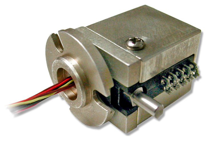 貴金属製のブラシとリングを備えた高速スリップリング。特徴は、①ロータ側のフライングリード線とステータ側のはんだ端子を使用して電気的接続を確実に行う、②...